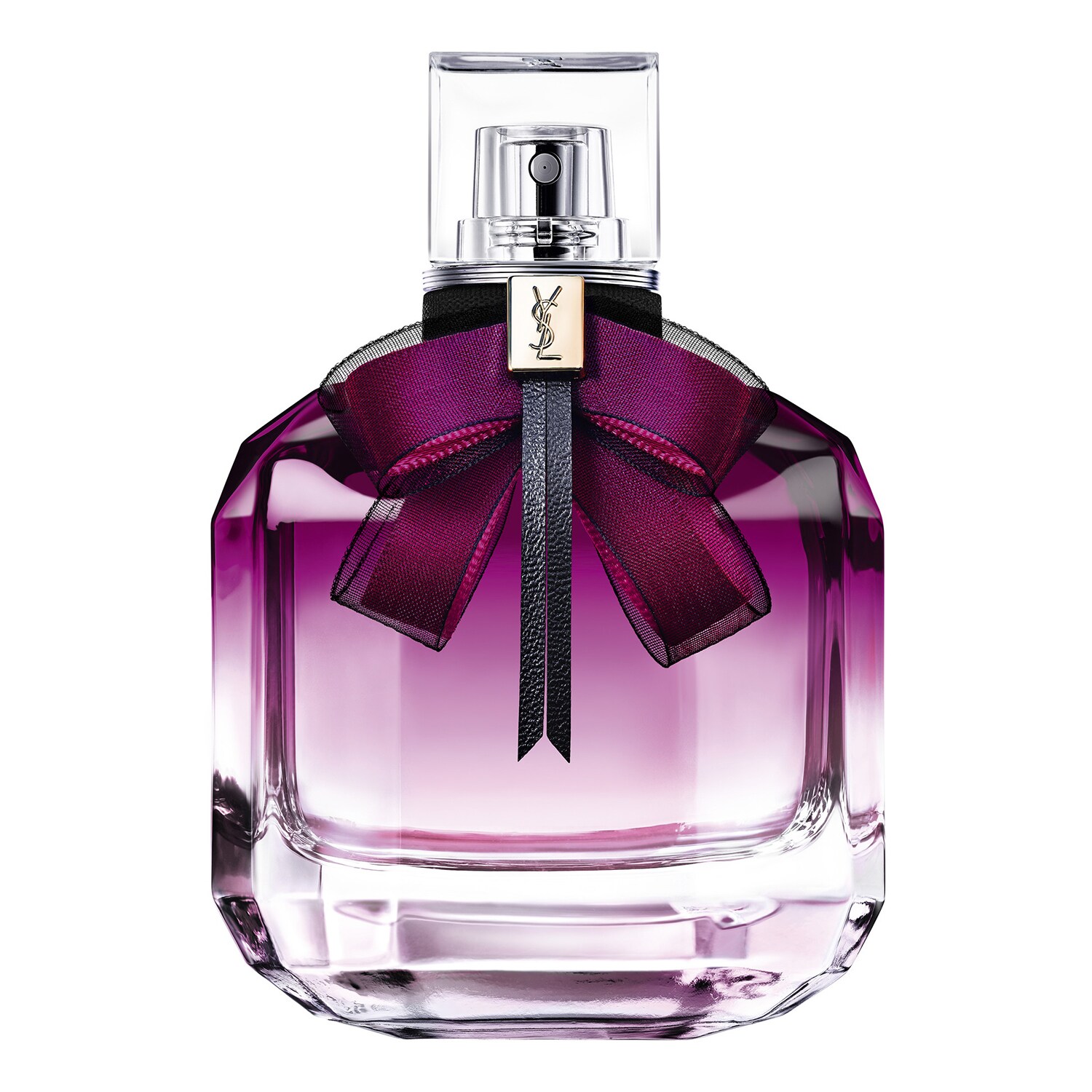 Το θρυλικό πολυεδρικό μπουκάλι του ντύνεται με το πιο φανταχτερό, ανάμεσα στα ροζ, το φούξια του Yves Saint Laurent. Ο φιόγκος Lavallière γύρω από το λαιμό του, φούξια και μεταξένιος φυσικά, αποκτά όγκο χάρη στο μυστηριώδες πέπλο από μαύρη οργάντζα. Μια κομψή λεπτομέρεια YSL.