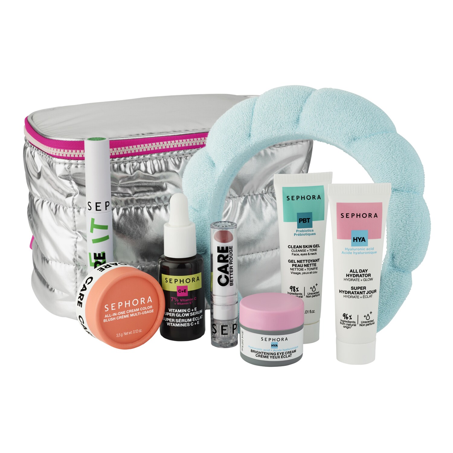 Για τους beauty addicts(1): αυτό είναι το σετ δώρου με προϊόντα ομορφιάς που δεν πρέπει να χάσετε φέτος. Περιέχει 8 προϊόντα SEPHORA COLLECTION για να χαρίσετε ή να μοιραστείτε, όλα με + 90 % συστατικά φυσικής προέλευσης. Μεταξύ περιποίησης δέρματος και μακιγιάζ, είναι η ιδανική επιλογή για να προετοιμαστείτε για τις γιορτές ή να (ξανα)ανακαλύψετε τα προϊόντα της μάρκας. Περιλαμβάνει επίσης ένα αξεσουάρ για να συνοδεύει όλες τις στιγμές selfcare(2): μια αξιολάτρευτη κορδέλα μαλλιών πετσετέ.Ιδέα για δώρο ομορφιάς: ένα νεσεσέρ σε περιορισμένη έκδοση